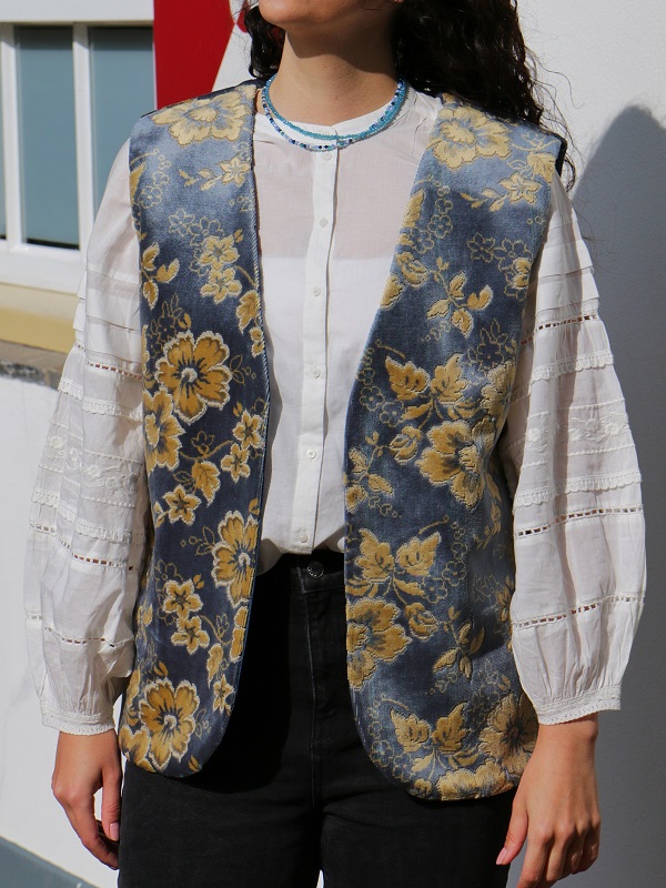 Met het Mave Gilet Long Blauw Velvet krijgt je outfit de kleurboost die het nodig heeft. Het lange en oversized model gilet is gemaakt van een tweedehands velvet kleed en is gevoerd met een mooi blauw gordijn. De mooie combinatie van deze luxe stof met de helder blauwe kleur zorgen ervoor dat je een echte eye-catcher aan je garderobe toevoegt!