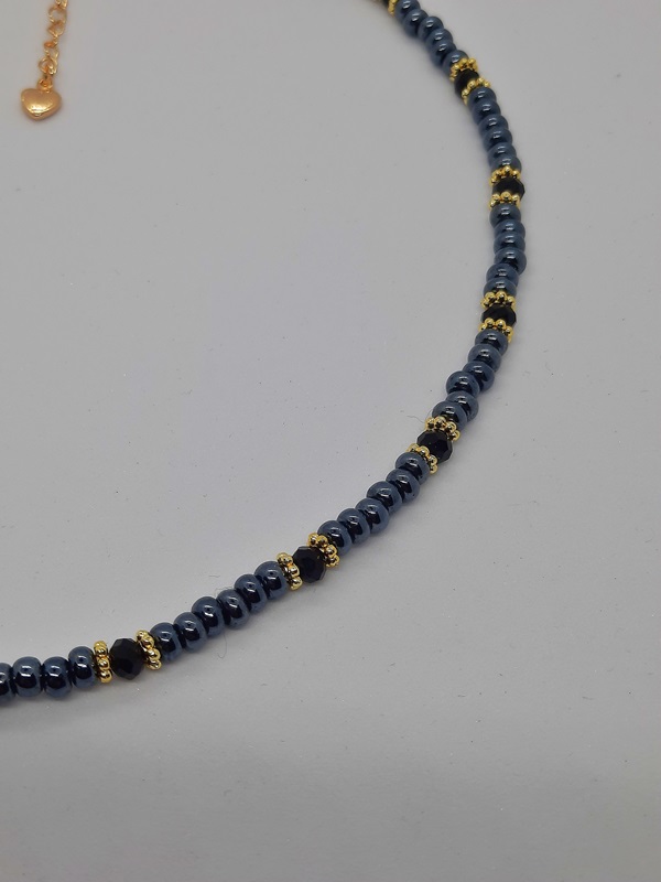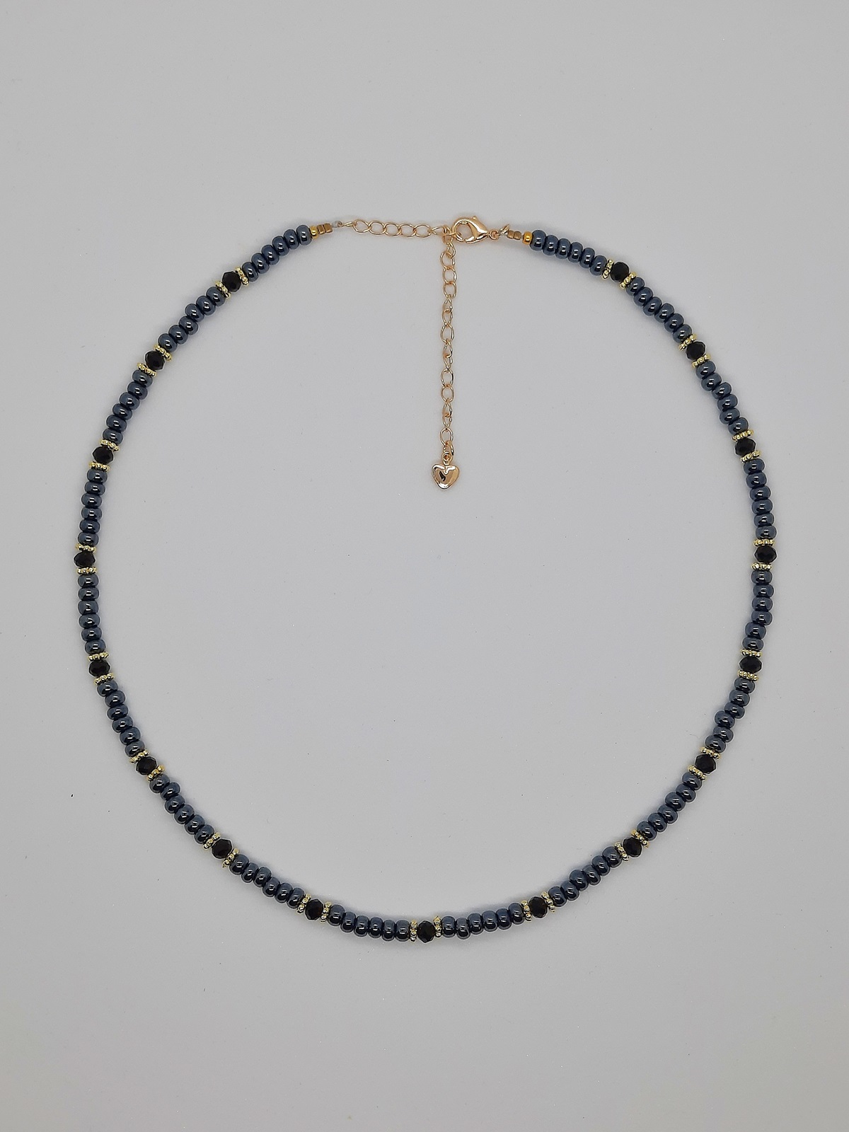 De Mave Ketting Black is een feestje om je hals. De chique ketting is geregen met zwarte rocailles kralen afgewisseld met gouden tussenkralen en zwarte rondelle kralen. Door het verlengstuk aan het 24K gold plated slotje kun je de ketting naar wens op lengte hangen.