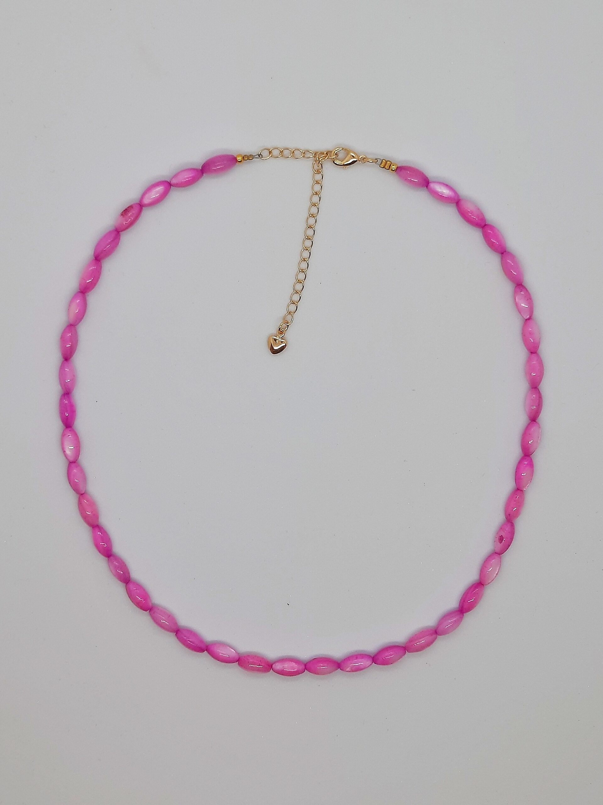 De Mave Necklace Pink is een simpele, maar toch een in het oog springende toevoeging aan je outfit. De roze ketting is geregen met glazen ovale kralen. Door het verlengstuk aan het 24K gold plated slotje kun je de ketting naar wens op lengte hangen.